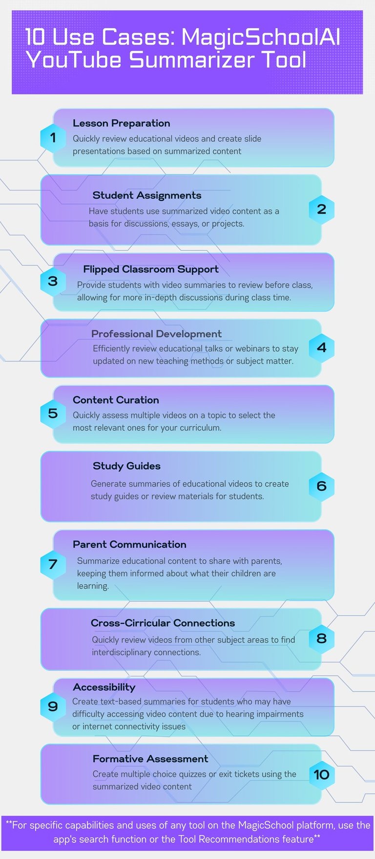 Click below for PDF download of 10 ideas for utilizing the YouTube Summarizer Tool